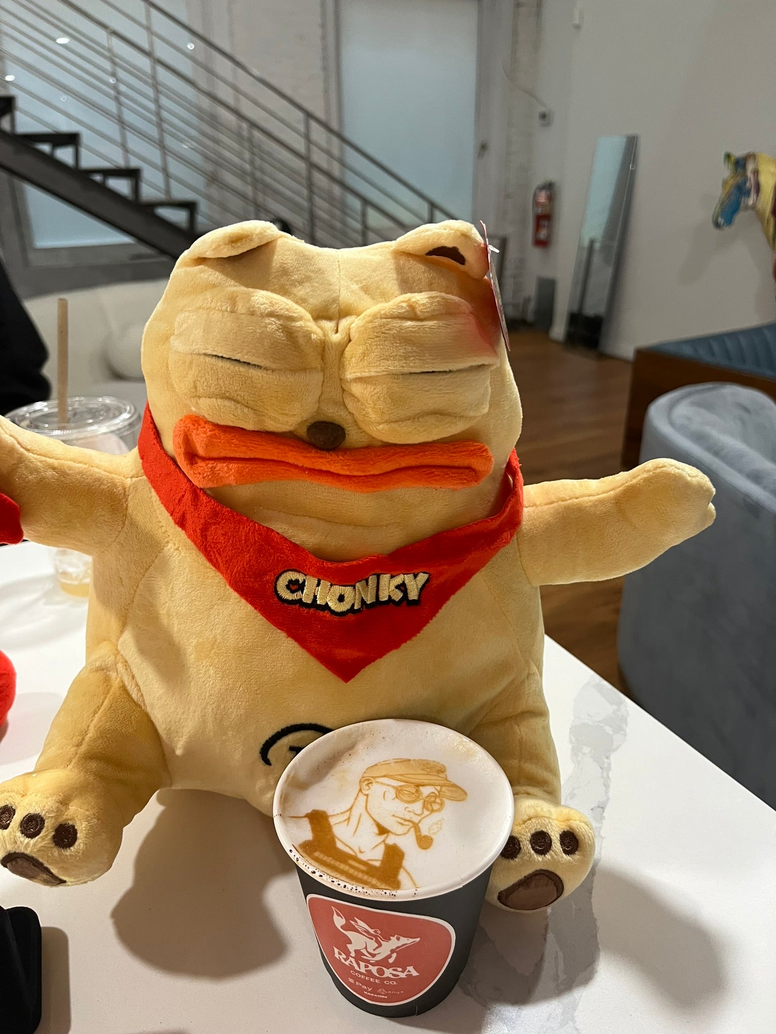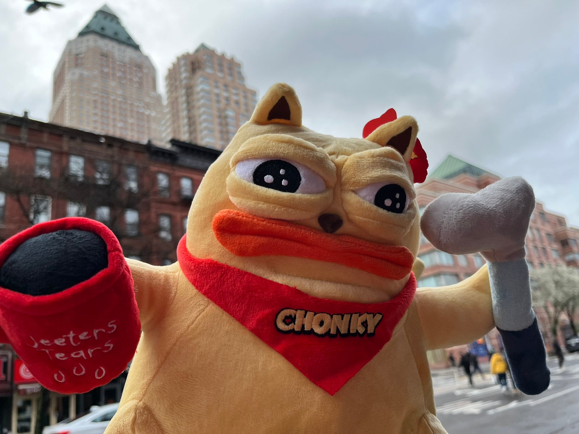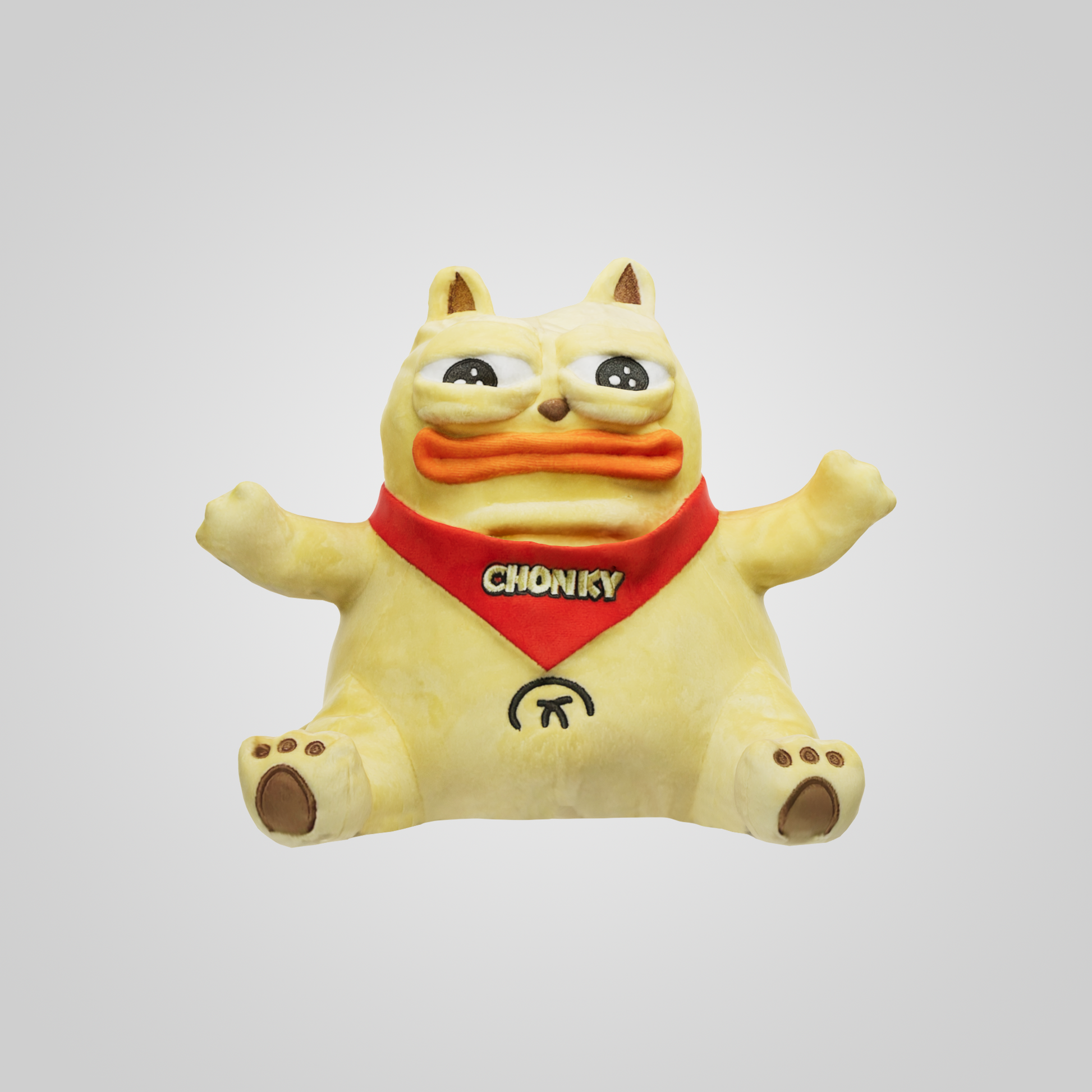This Chonky is so unique, it can't be called a "stuffie" or a "plushie." It's called a "Fattie," and with good reason. Chonky is approximately 10" x 10" x 10" when full. Unlike traditional stuffed toys, you can adjust Chonky's eye-lids to give him any expression you want. You can twist his lips up or down for slight smirks or frowns. Plus, magnets in his hands allow Chonky to hold meme-making accessories! Make your own memes irl with the limited edition Chonky Fattie!
